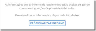 A opção Pré-visualizar informe, quando definida como Sim, possibilita a que o Informe de Rendimentos seja apresentado ao abrir a tela. Caso deseje manter a privacidade da informação, recomendamos que essa opção esteja definida como Não. Ao acessar o demonstrativo, será apresentada a mensagem abaixo: