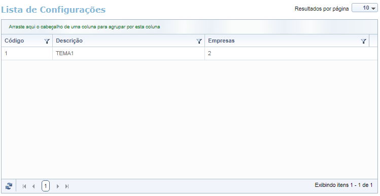 Ao abrir essa funcionalidade, é apresentada uma relação das Configurações de Tematização do Portal cadastradas: