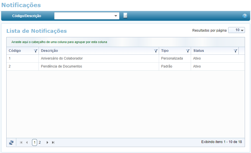 As inclusão, alteração, exclusão e consulta de notificações só estará disponível aos operadores mediante parametrização na funcionalidade Configurar Permissões.