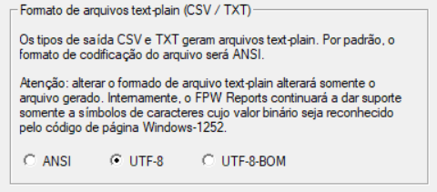 O Formato de arquivos text-plain da guia Info.Gerais deve ser UTF-8.