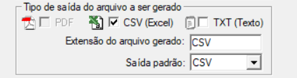 O Tipo de saída do arquivo a ser gerado escolhido na guia Info. Documento deve ser CSV(Excel);