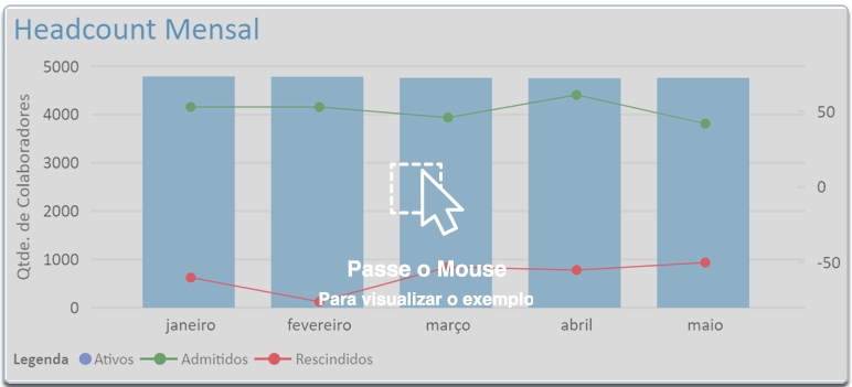 O gráfico Headcount Mensal, permite ao usuário acompanhar o headcount dos últimos meses, considerando o mês atual aplicado.
