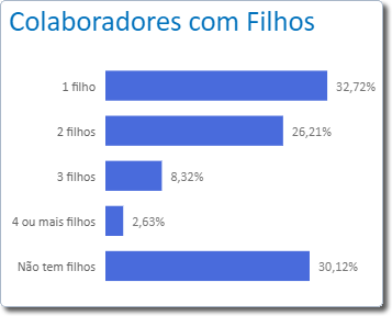 O gráfico permite acompanhar a quantidade de colaboradores com filhos (de acordo com o cadastro de seus dependentes), e sua respectiva quantidade.