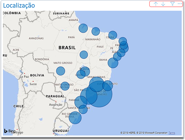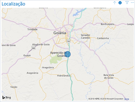 Ana deseja visualizar um nível de localização abaixo do exibido inicialmente , para isso, ela clicou sobre a opção   e a visualização da localização passou a descer no nível de Goiás, da seguinte forma: