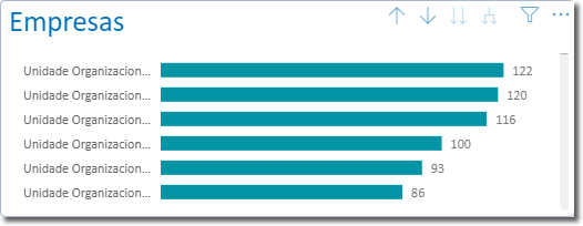 O gráfico EMPRESAS, permite a visualização da distribuição dos colaboradores por empresa, porém também é possível utilizar o recurso de hierarquia, para que possa "descer" um nível e dessa forma visualizar a distribuição de Headcount por unidade organizacional.
