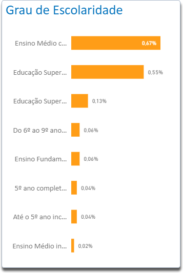 O gráfico permite a verificação do percentual de colaboradores por grau de escolaridade.