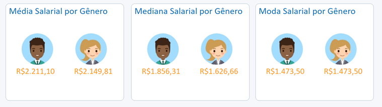 Por meio deste gráfico é possível visualizar a média salarial dos colaboradores, considerando seus gêneros, a partir dos cálculos das médias: