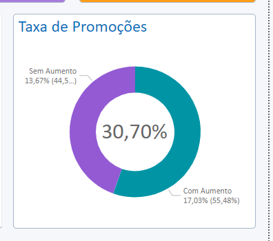 O gráfico Taxa de Promoções apresenta a taxa de promoções totais com divisão de com e sem aumento de salárial.