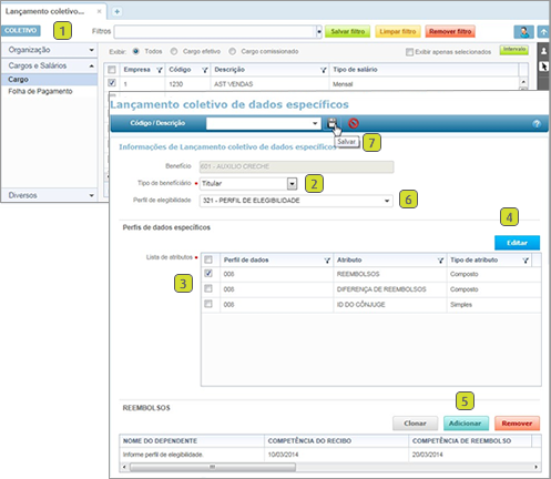 elegíveis ao Lançamento coletivo de dados específicos.