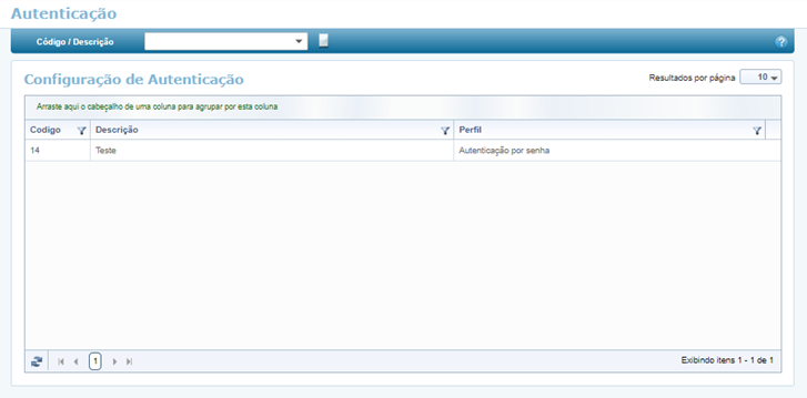 Para iniciar o cadastro, clique em (Novo). Ao fazer isso, a tela Informações de Autenticação surgirá, nela informe a Descrição desejada e o Perfil determinante para o processo de autenticação que será realizado para esse cadastro.