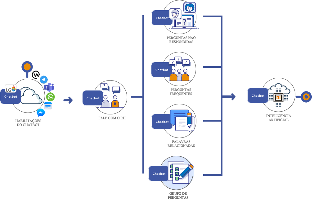 Através dessa funcionalidade é possível agrupar Perguntas Frequentes que pertençam a um tema específico. Além de proporcionar uma melhor organização de conteúdo, os Grupos de Perguntas também serão utilizados pelo bot para identificar e esclarecer eventuais dúvidas do colaborador.