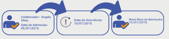 Neste cenário, o operador não conseguiu realizar a inserção da nova Data de admissão do colaborador, pois esta se encontrava posterior à data da ocorrência.