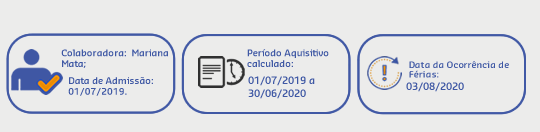 O período aquisitivo é calculado com base na Data de admissão e ao registrar uma Ocorrência de Férias, o período aquisitivo é considerado conforme o seguinte cenário: