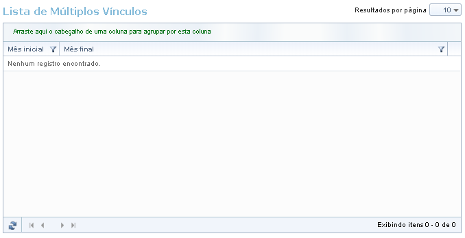 Na lista de múltiplos vínculos são apresentados os vínculos já cadastrados no sistema, sendo possível realizar operações, como: ordenações, filtros e agrupamentos. Para saber mais clique aqui.