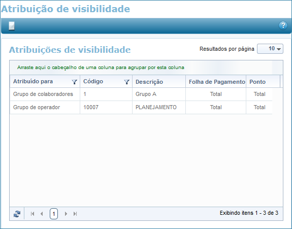 Na Lista de Atribuições de visibilidade, é possível realizar algumas operações, como: ordenações, filtros e agrupamentos. Para saber mais clique aqui.