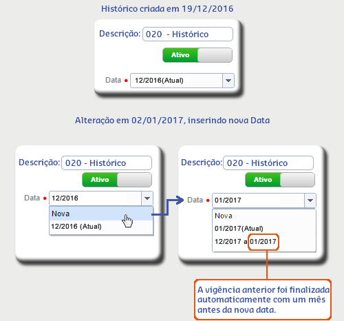 • Ao alterar algum dado e informar uma nova Data, inicia-se uma nova vigência e encerra o período anterior.