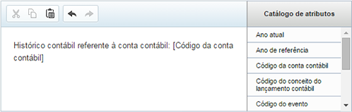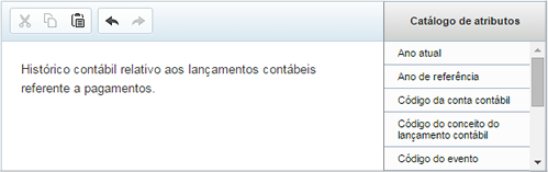 No campo Histórico, descreva as informações referentes ao lançamento contábil, para que estas sejam apresentadas na geração do arquivo, podendo ser texto livre e/ou selecionado o(s) atributo(s) desejado(s) no Catálogo de atributos.