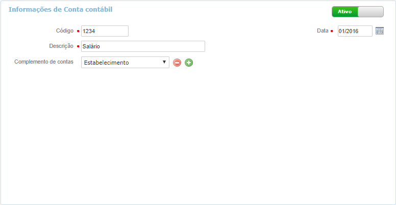 Os Complementos de Contas devem ser previamente cadastrados na respectiva funcionalidade.