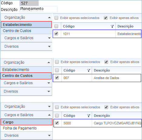 Para o código 527, foi utilizado os mesmos conceitos do código 526. Ao salvar o novo Grupo Contábil o sistema impedirá a criação, pois não poderá existir conceitos idênticos.
