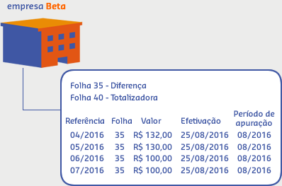 No dia 25/08/2016 foi identificado que a empresa Alfa, na competência 07/2016, deixou de pagar uma hora extra no valor de R$ 352,00. Assim o operador logado na empresa Beta realiza o seguinte cálculo retroativo:
