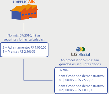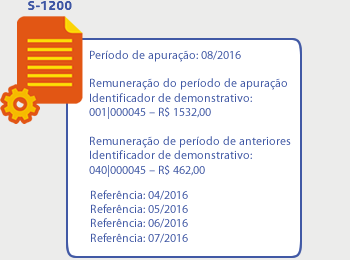 Ao processar o arquivo S-1200 o sistema identifica que há valores no período de apuração 08/2016, que ainda não foram enviados. Assim o sistema gera o seguinte arquivo: