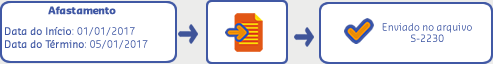 As informações de Início e Término do Afastamento serão enviadas em conjunto, quando o sistema identificar que há início e o término para ser enviado dentro do Período de Busca do afastamento.