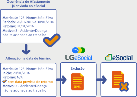 Quando a ocorrência de Afastamento temporário, já enviada ao eSocial (inclusão/alteração) com o status Aceito, tiver sua data de Retorno removida e alterada para sem data prevista de retorno.