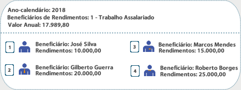 Considerando a seguinte parametrização para o Valor Anual Mínimo de Rendimentos e os Beneficiários 1, 2, 3 e 4 abaixo: