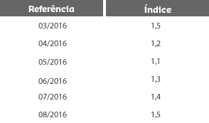 Considerando os índices financeiros cadastrados na funcionalidade Índice Financeiro os seguintes: