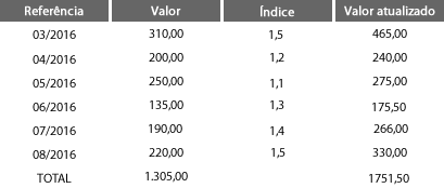 Atualização 217,50 * 1,5 * 1,2 * 1,1 * 1,3 * 1,4 * 1,5 = 1.175,67
