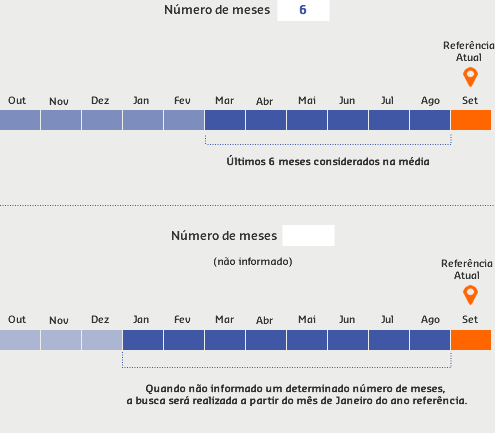 Se algum mês foi desconsiderado do cálculo é possível incluir meses anteriores por meio da opção Completar número de meses considerando meses anteriores ao período de busca.