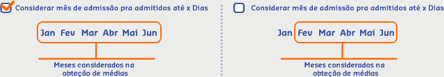 Esta opção permite considerar o mês de admissão para admitidos até uma determinada quantidade de dias, se o Número de meses informado no PE for o mês de admissão do colaborador, ou seja, caso o colaborador seja admitido em uma data em que ocorra menos de 15 dias trabalhados naquele mês, é possível considerar ou não aquele mês no cálculo. Caso esteja desmarcado, o sistema avalia se existe mais que 14 dias trabalhados para o considerar.