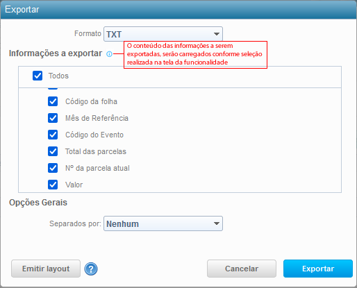Caso necessite realizar a exportação das informações em arquivo, clique no ícone
