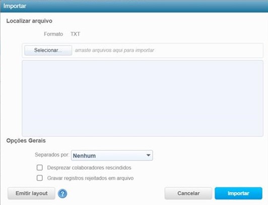 Caso deseje realizar importação das informações através de um arquivo, clique sobre o