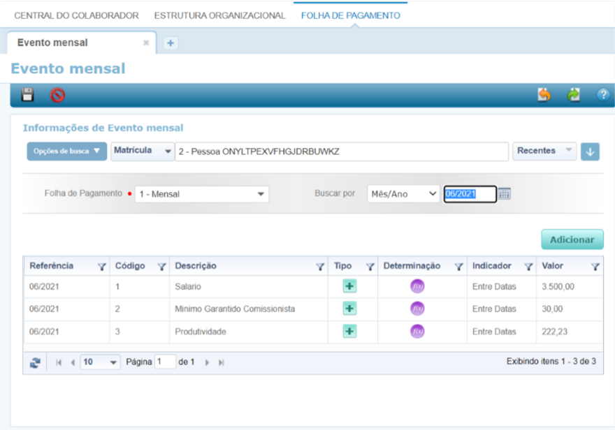 Através dessa funcionalidade é possível manipular eventos que já foram calculados na folha de pagamento de um determinado colaborador, dentro da referência atual.