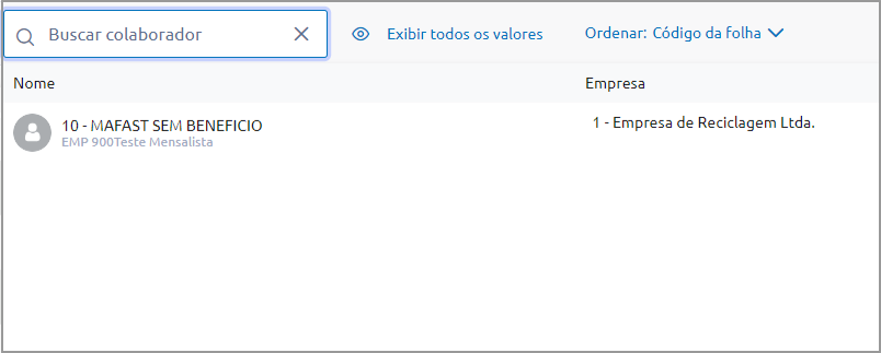 O recurso de ocultar ou apresentar valores é disponibilizado para cada resumo de folha apresentado, indicados pelos