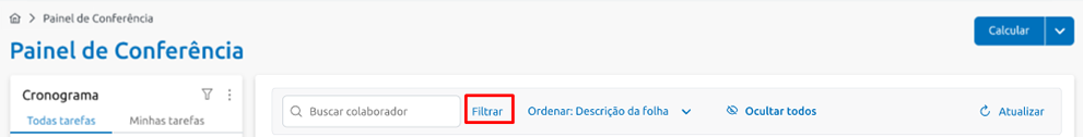 • Caso exista folha calculada para algum colaborador com salário na faixa de valores restringidos, os valores desse colaborador também não serão considerados no painel de conferência.