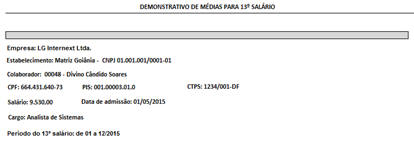 13º Salário - Período do 13º salário: de mm até mm/aaaa