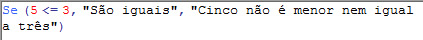 O resultado da fórmula acima é Cinco não é menor nem igual a três.