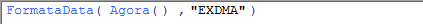 Para personalizar o formato de saída da data, pode-se utilizar a função FormataData. Supondo que a data atual do sistema seja 18/12/2014, o retorno da data é 18 de dezembro de 2014.