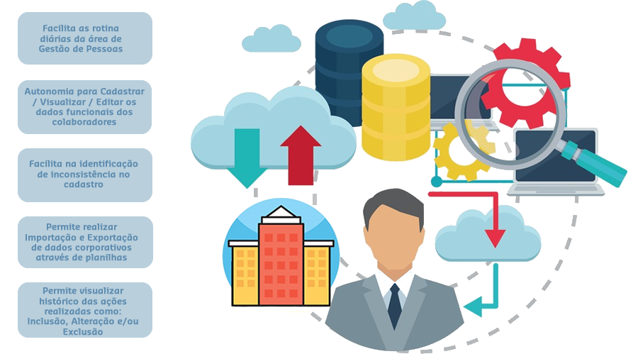 O módulo Cadastro Corporativo é fundamental para os demais módulos, pois a base das informações dos colaboradores é através dele. O fornecimento das informações, é realizada através de importação de planilhas, e/ou alteração individual de informações cadastrais.