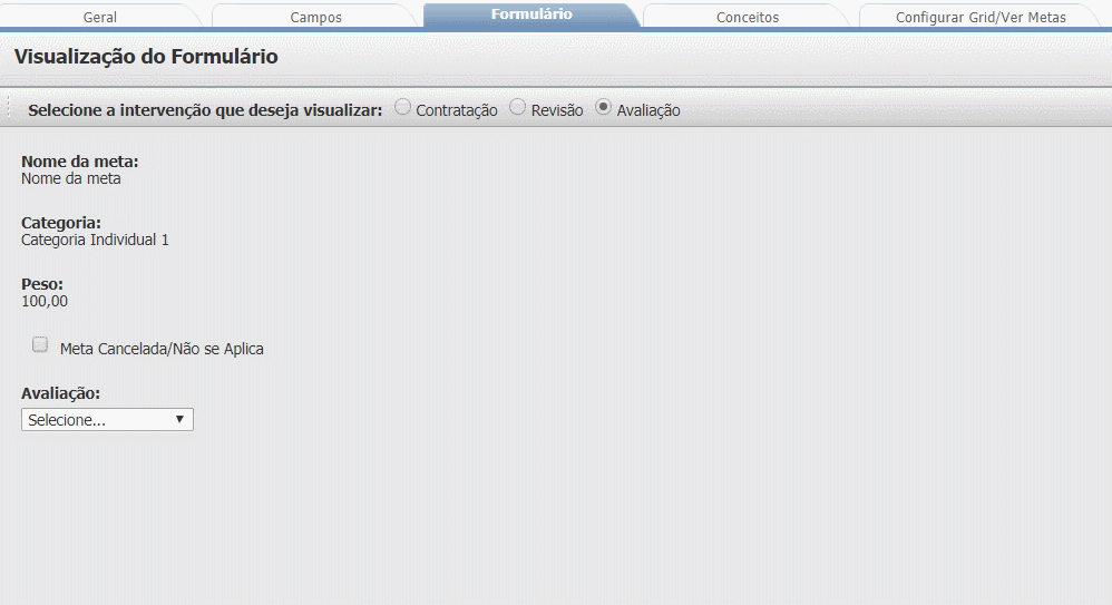 Um formulário poderá ser utilizado tanto para metas individuais quanto para metas de grupo.
