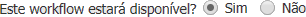 A tela da funcionalidade exibe informações da situação do Workflow para com o módulo através da coluna Disponível, exibindo Não na coluna para informar que as configurações não serão aplicadas no módulo, e quando apresenta Sim na coluna, o contrário ocorre.