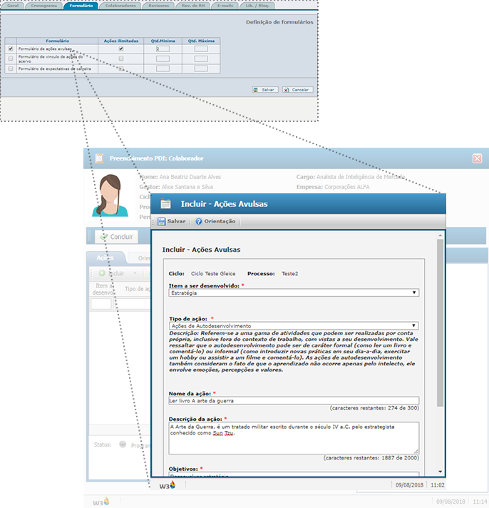 Formulário de ações avulsas - neste tipo de formulário, no portal do colaborador será disponibilizada uma tela para que o colaborador possa cadastrar ações que não estejam no acervo do sistema.