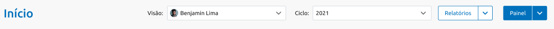 A Visão pode ser tanto Individual - Usuário Logado, onde será exibido o cabeçalho, filtros, atividades pendentes, widgets, navegação nas telas antigas. Como também Visão Individual - Subordinado, composto por widgets e por fim Ver Equipe, que é apresentada aos colaboradores que tiverem equipes associadas em sua hierarquia, que dependerá do Ciclo que estiver selecionado pelo colaborador, e apresentará os resultados consolidados da equipe associada ao mesmo.