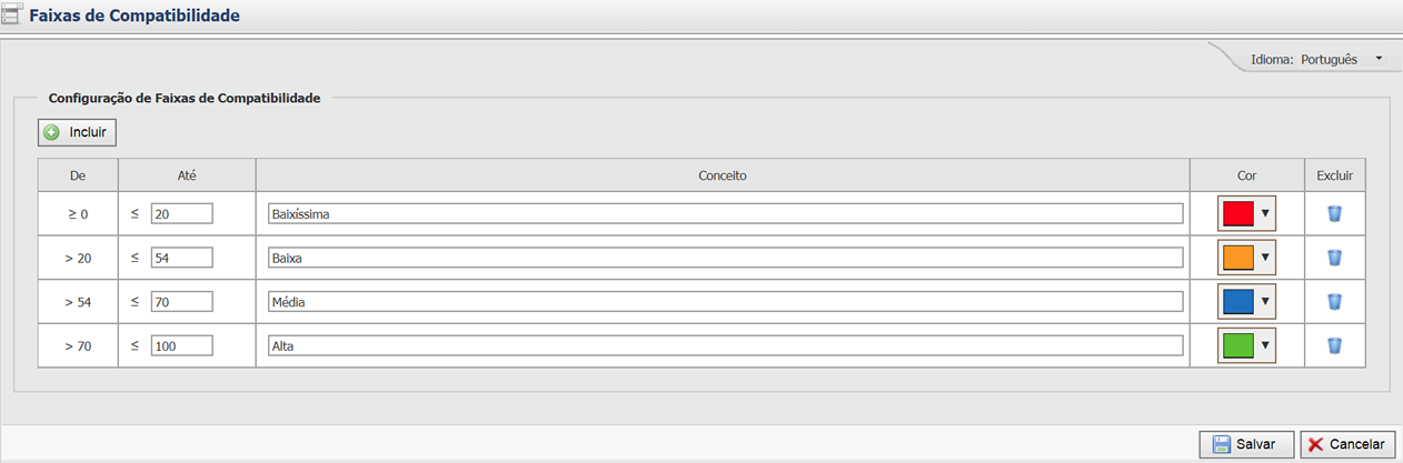 A Faixa de Compatibilidade age nas Posições em termos de aderência conforme o Perfil cadastrado e associado à posição que é analisada.