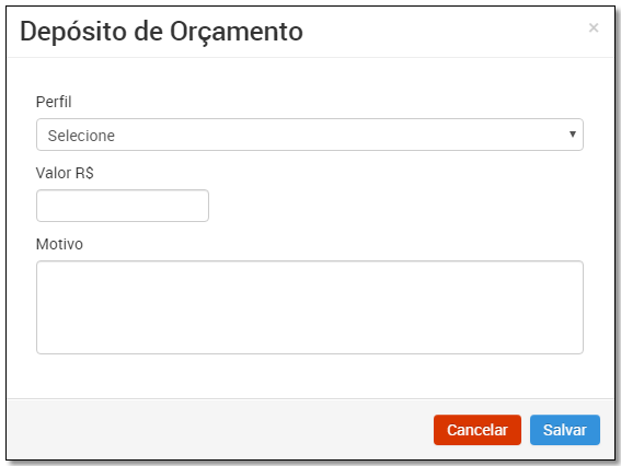 Depositar - É possível realizar depósitos de valores conforme Grupo Hierárquico, informando Valor e Motivo.