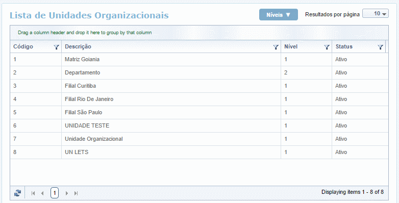 Para cadastrar uma nova unidade organizacional, clique sobre o botão