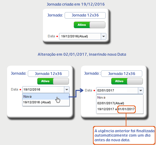 • Ao alterar algum dado da jornada e informar uma nova Data, inicia-se um novo período histórico que encerra o período anterior.