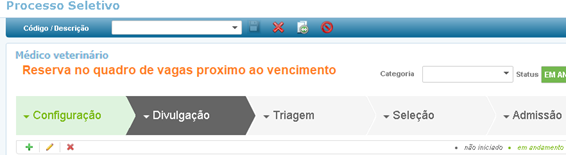 Após realizar todos esses procedimentos de configuração da vaga, citados acima, será possível gerir as seguintes fases da vaga: